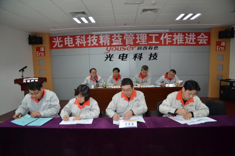 會(huì)議宣讀了《陜西有色光電科技有限公司精益管理工作推進(jìn)方案》《強(qiáng)力推進(jìn)精益管理干部考核辦法》等。會(huì)上,公司與開(kāi)展精益管理工作的各部門(mén)負(fù)責(zé)人簽署了《持續(xù)推進(jìn)精益管理工作承諾書(shū)》;公司總經(jīng)理田建之向各單體精益專(zhuān)員頒發(fā)了委任狀。