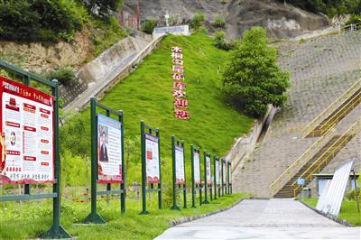 積極培育具有礦山特色的生態(tài)文化,凝心聚力,成風化人。2019年8月在尾礦壩開展了建設生態(tài)文化主題宣傳,現場定置擺放宣傳展板30余個。公司黨委書記、董事長秦寧昌親自參與這次策劃,推動生態(tài)文化引起共鳴,將尾礦壩一側供過往職工歇腳的亭子命名為“永安亭”,并創(chuàng)作了兩幅寓意鮮明的對聯懸掛在亭門上,其中一幅寫道:“留得青山福萬代,守住綠水佑子孫?!?