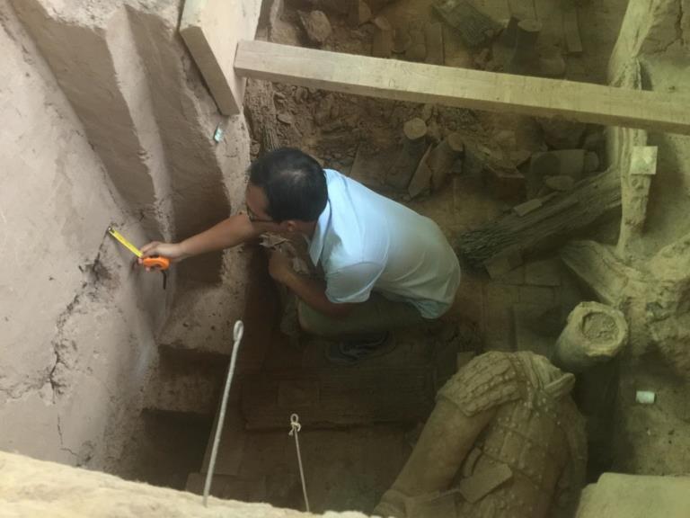 勘測(cè)公司技術(shù)人員在秦始皇兵馬俑1號(hào)坑現(xiàn)場(chǎng)調(diào)查測(cè)繪