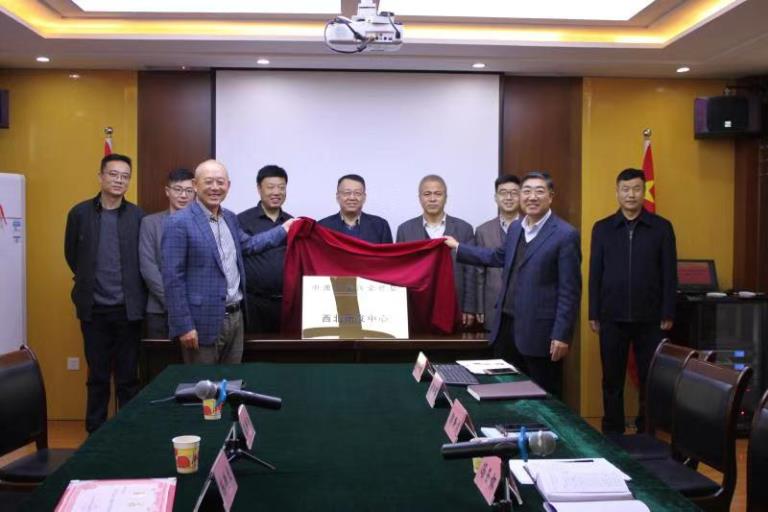 陳德立教授與研究院公司領(lǐng)導(dǎo)為中澳土壤污染修復(fù)西北研發(fā)中心揭牌