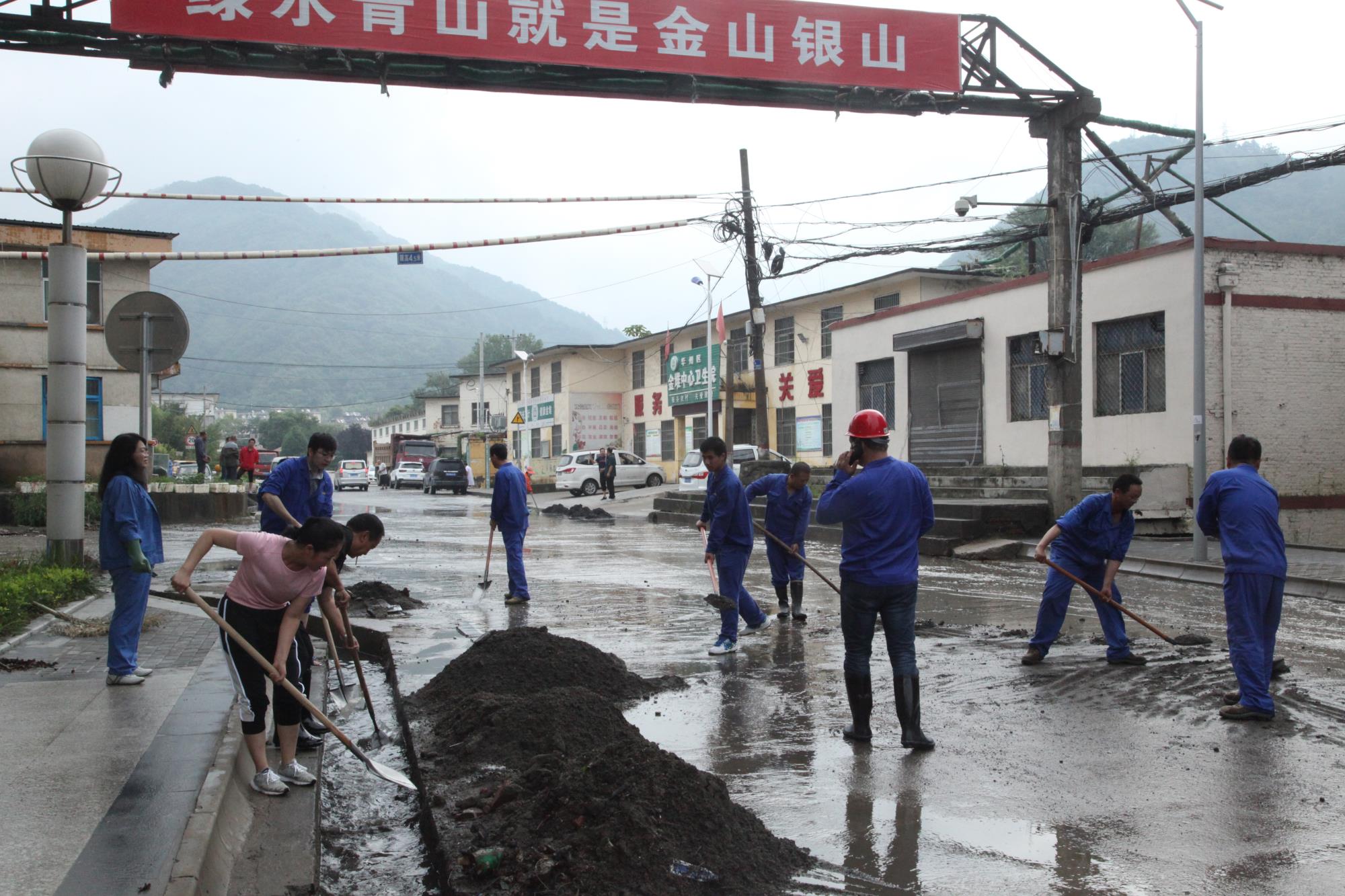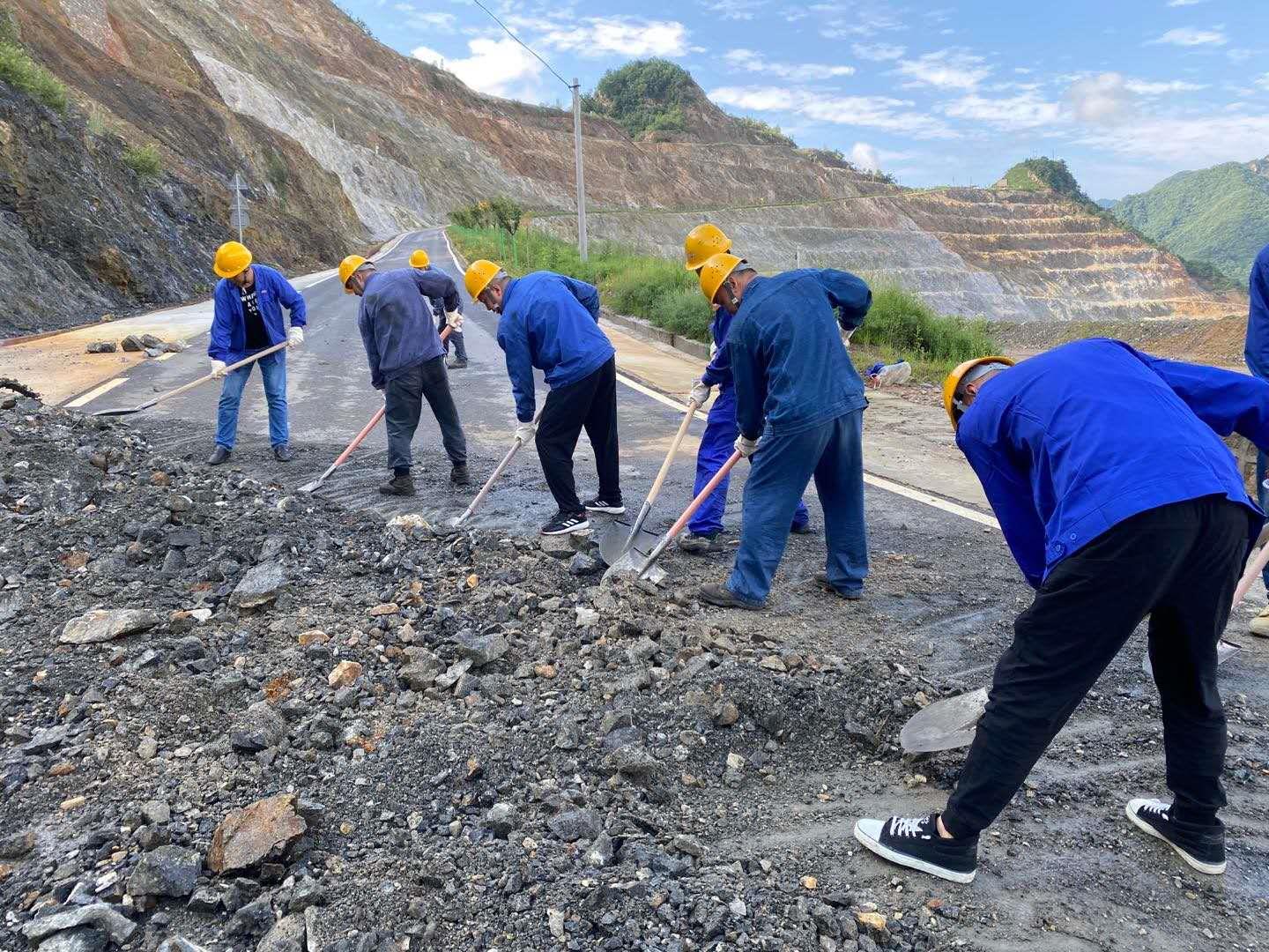 露天礦積極響應(yīng)金鉬集團(tuán)號召,在全員開展自救工作的同時,抽調(diào)骨干力量和設(shè)備,馳援受災(zāi)最嚴(yán)重的地區(qū),展開對外援助工作。8月6日上午,在搶修石可至麻家砭道路中,露天礦抽調(diào)11臺工程機(jī)械和車輛,露天礦領(lǐng)導(dǎo)帶領(lǐng)100余人奔赴現(xiàn)場,他們克服持續(xù)降雨、河水漫漲、通訊不暢、運(yùn)輸?shù)缆藩M窄、夜間照明不良等困難,歷經(jīng)63小時搶修水毀道路4公里, 8月8日晚23時道路通行,為金堆礦區(qū)恢復(fù)供水供電提供了保障。臨近的洛南縣麻坪鎮(zhèn)災(zāi)情最為嚴(yán)重,隨后,露天礦又參與到搶修麻坪鎮(zhèn)通村道路工作中。為了爭取更多的搶修時間,救災(zāi)人員自帶干糧,與災(zāi)民同吃同住,歷時15天,搶修水毀道路7公里,倒運(yùn)砂石量20000立方米,于8月25日12時恢復(fù)了至洛南縣的通村道路。