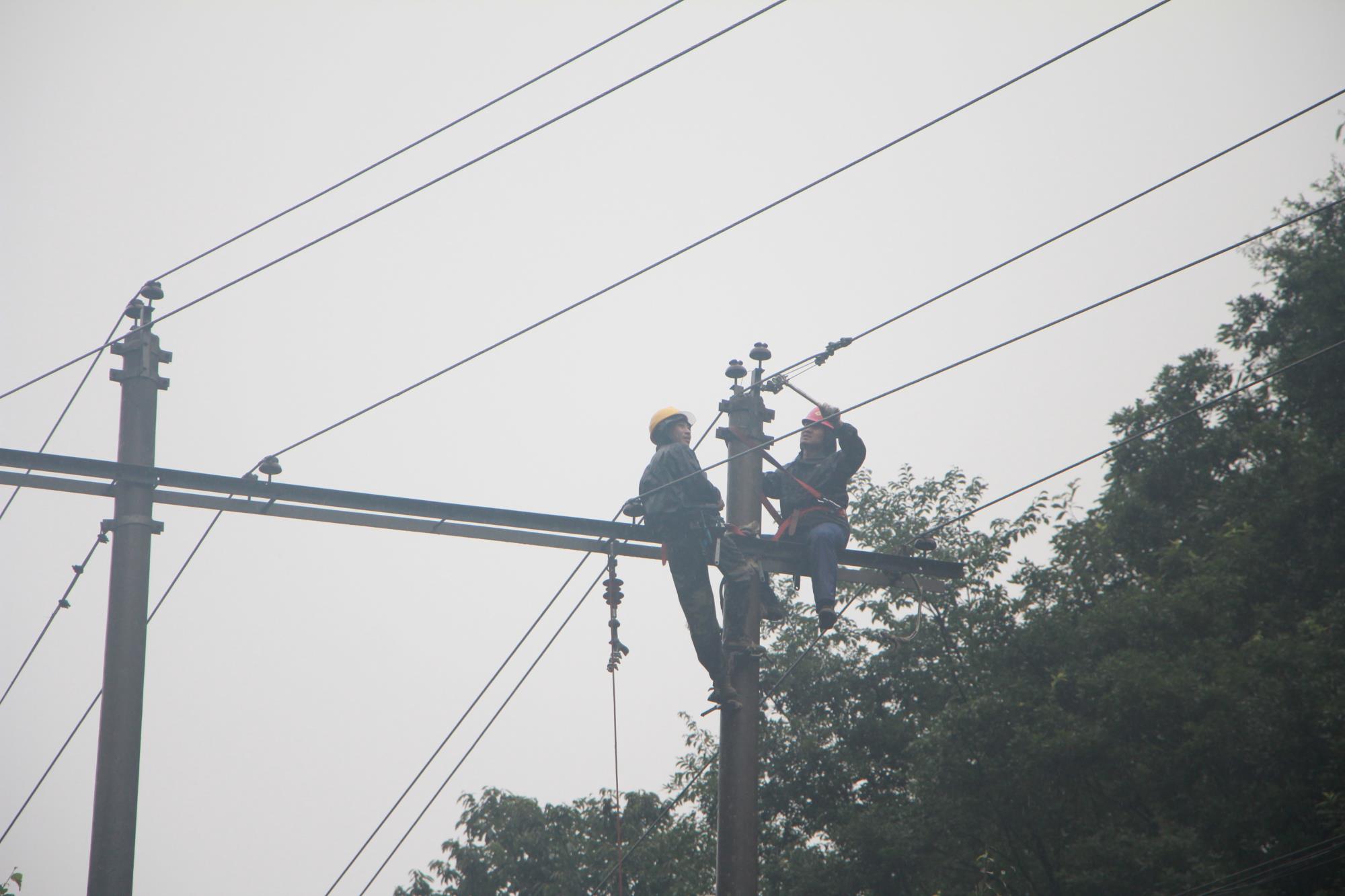 8月7日凌晨6點(diǎn),秦煜與搶修人員一起背著重達(dá)數(shù)百斤的金器具,穿著厚重的雨衣、肩扛沉重的拉線,憑借過(guò)硬的技術(shù),他們?cè)趽屝奕蝿?wù)中作為第一主力軍,分別完成了水源30號(hào)、32號(hào)、35號(hào)的上桿接線,共計(jì)在高空作業(yè)長(zhǎng)達(dá)12小時(shí)。剛搶修完的32號(hào)電桿被連降的暴雨沖刷突然折斷,線路再次中斷。次日早晨他與同事再次整裝出發(fā),進(jìn)行搶修。他們一鼓作氣,經(jīng)過(guò)11小時(shí)連續(xù)作業(yè),終于完成了電纜對(duì)接,于當(dāng)天19時(shí)47分成功接通水源Ⅰ回線路,恢復(fù)了礦區(qū)的正常供水。
