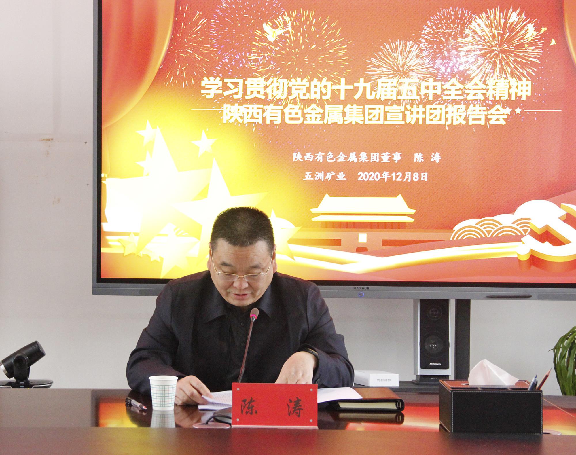 12月8日,學習貫徹黨的十九屆五中全會精神陜西有色金屬集團宣講團報告會在五洲礦業(yè)舉行。陜西有色金屬集團宣講團成員、董事陳濤作宣講報告,五洲礦業(yè)黨委書記、董事長張景奇主持。