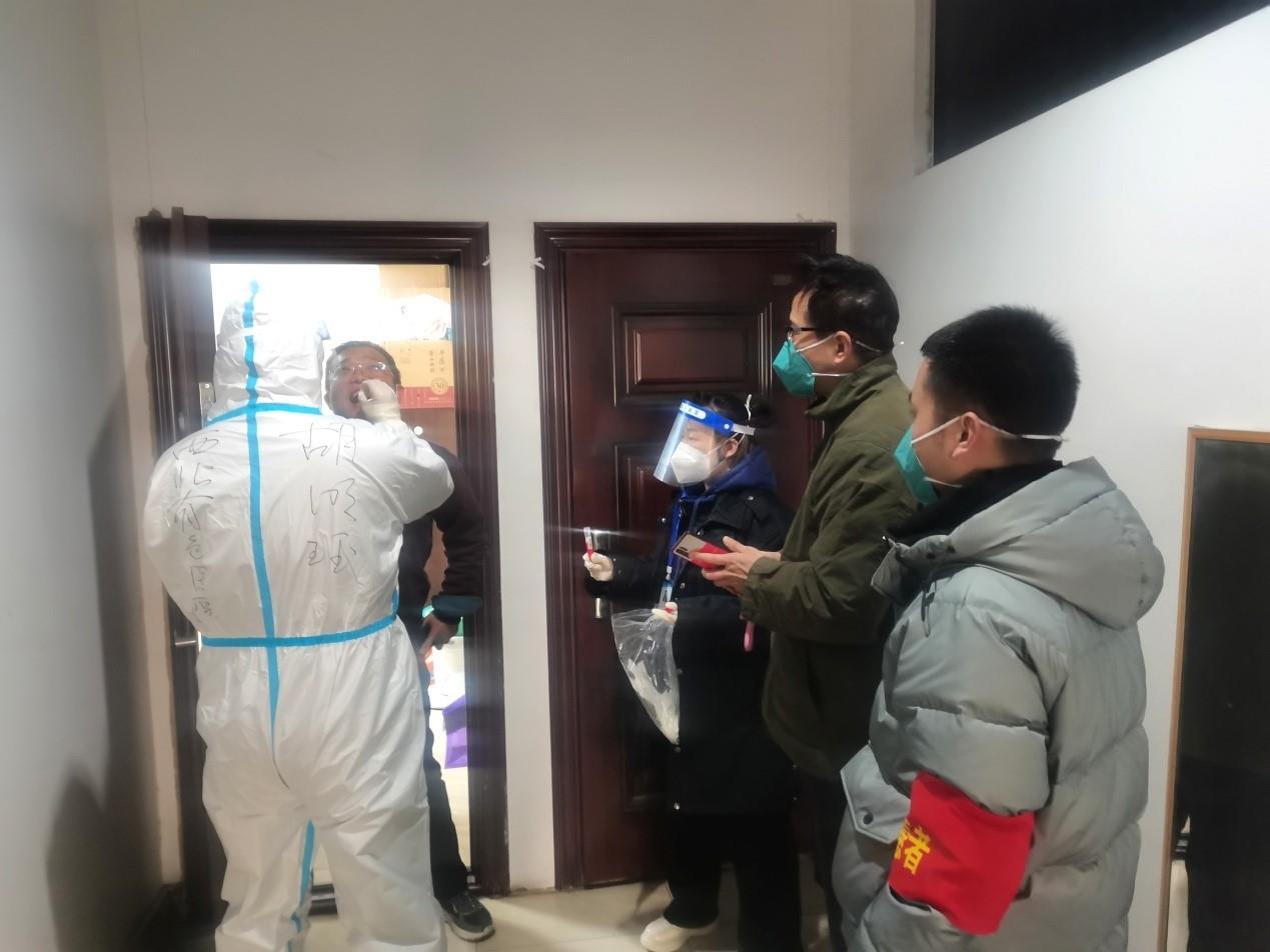 “請(qǐng)大家有序排隊(duì),逐一掃碼、登記、做核酸,隔離期間不要出門?!痹趦杉瘓F(tuán)總部職工宿舍外,下沉一線的志愿者趙山順帶著社區(qū)醫(yī)護(hù)人員為隔離人員上門做核酸。他說:“我是入黨積極分子,就是要積極向黨組織靠攏,在疫情防控的關(guān)鍵時(shí)刻有所擔(dān)當(dāng)?!?