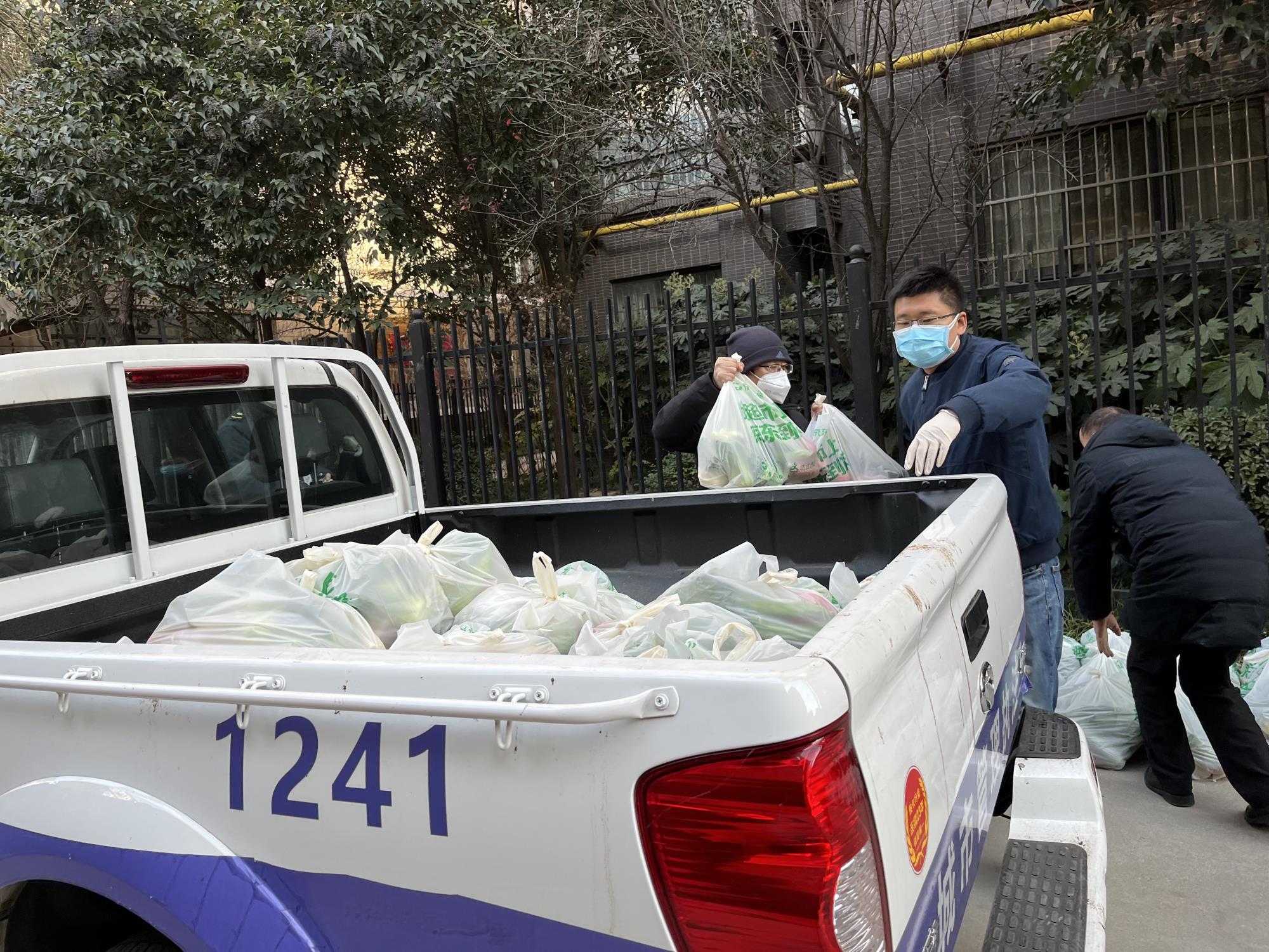 “菜什么時候能送到,家里都快斷炊了?!薄澳軒臀壹疑狱c東西嗎?家里沒米了!”“我家隔壁沒住人,不用送菜了。”……家住碑林區(qū)新旅城的地礦集團東新科貿(mào)志愿者劉剛、工程公司志愿者朱斌面對小區(qū)居民每天的“點單”忙的不可開交,和社區(qū)工作人員快速登記,逐戶送菜到住戶家門口。