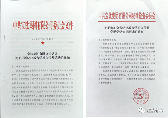 8月16日,寶鈦集團紀委專門印發(fā)《關(guān)于參加全省紀律教育學(xué)習(xí)宣傳月黨規(guī)黨紀知識測試的通知》,要求各單位黨組織廣泛動員、認真組織,掀起學(xué)習(xí)黨規(guī)黨紀的熱潮,確保教育對象全員參與,知識測試全面覆蓋。