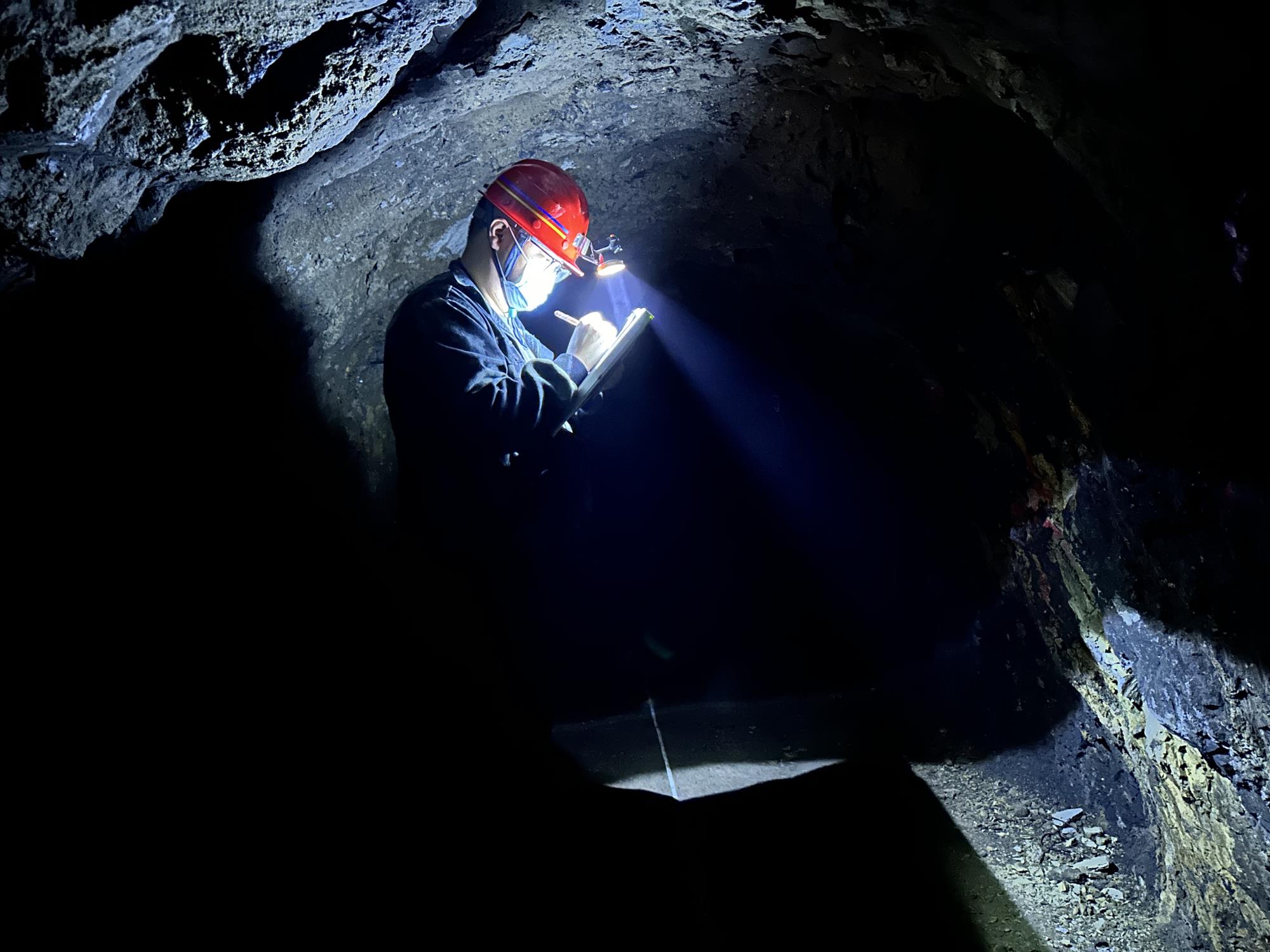 當(dāng)寨子溝礦區(qū)樣品送檢后,坑道成了我的另一個(gè)課堂。師父教我測量各類產(chǎn)狀,教我展點(diǎn)和產(chǎn)狀,教我如何勾畫地質(zhì)界線……水珠從坑道頂板滴落,在礦燈光束里拉出銀線。師父的筆尖在巖壁上游走如活物,筆尖順層理滑動,在圖紙上旋出流暢的曲線?;璋倒饩€下,那墨線竟有了生命般微微搏動——巖石的密碼被解開一道縫隙,礦脈的暖流正滲出石壁。地質(zhì)錘叩擊巖壁的顫音未散,巖石紋層間簌簌剝落的碎屑里,恍有古河道裹挾風(fēng)沙的呼嘯掠過指腹。