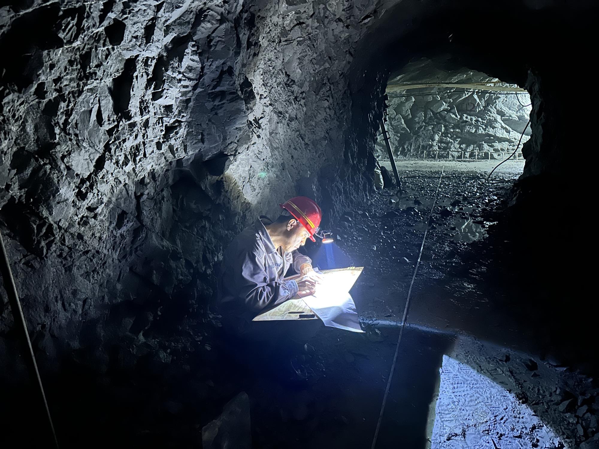 山陽縱橫礦業(yè)的地質技術服務合同還未敲定,但礦山生產(chǎn)不能等。這一周成了與時間的搶奪戰(zhàn),每日晨光稀薄時,頭燈便已劃破礦井幽深的黑暗。地下分不清晝夜,只有巖壁滲水單調的滴答聲作伴。我們弓身在水汽彌漫的巷道里穿行,好不容易找到片稍干爽的地方,剛攤開素描紙,水痕又暈染了墨線。我們的地質編錄工作常與坑道施工“撞車”,遠處不時傳來悶雷般的爆破聲,震得心口發(fā)麻,防塵口罩混著水汽堵在鼻腔,讓人更加煩躁。