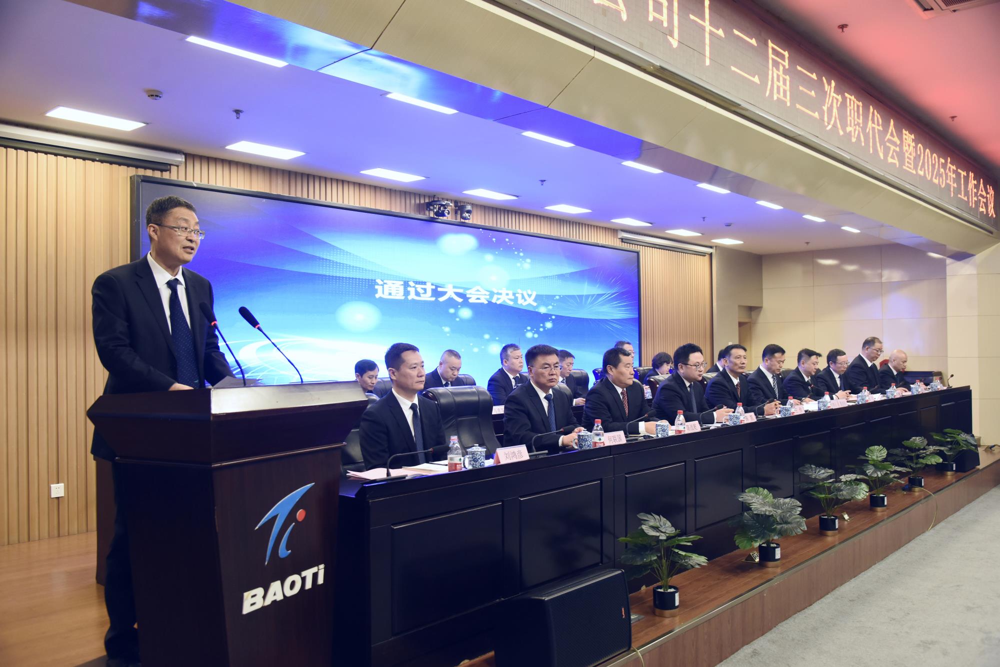 1月23日,寶鈦集團(tuán)十二屆三次職代會(huì)暨2025年工作會(huì)議順利召開(kāi)。集團(tuán)黨委書(shū)記、董事長(zhǎng)、總經(jīng)理王儉作工作報(bào)告,黨委副書(shū)記、工會(huì)主席賀治民主持會(huì)議,黨委委員、副總經(jīng)理何聯(lián)國(guó)傳達(dá)上級(jí)會(huì)議精神。