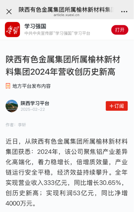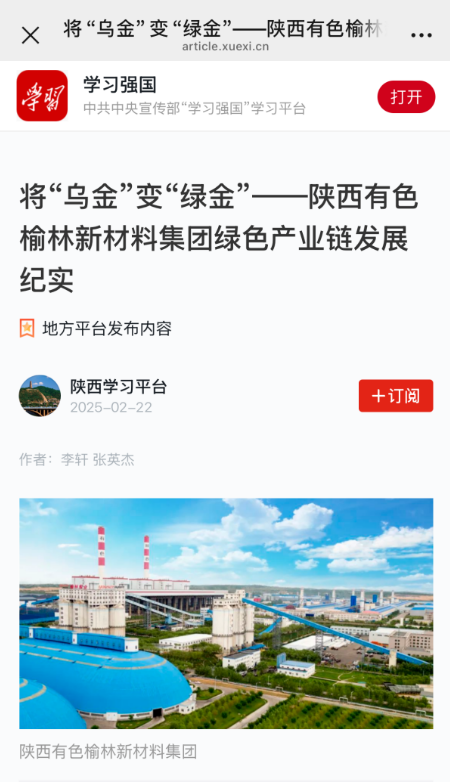 “學(xué)習(xí)強國”平臺連續(xù)報道榆林新材料集團高質(zhì)量發(fā)展成效