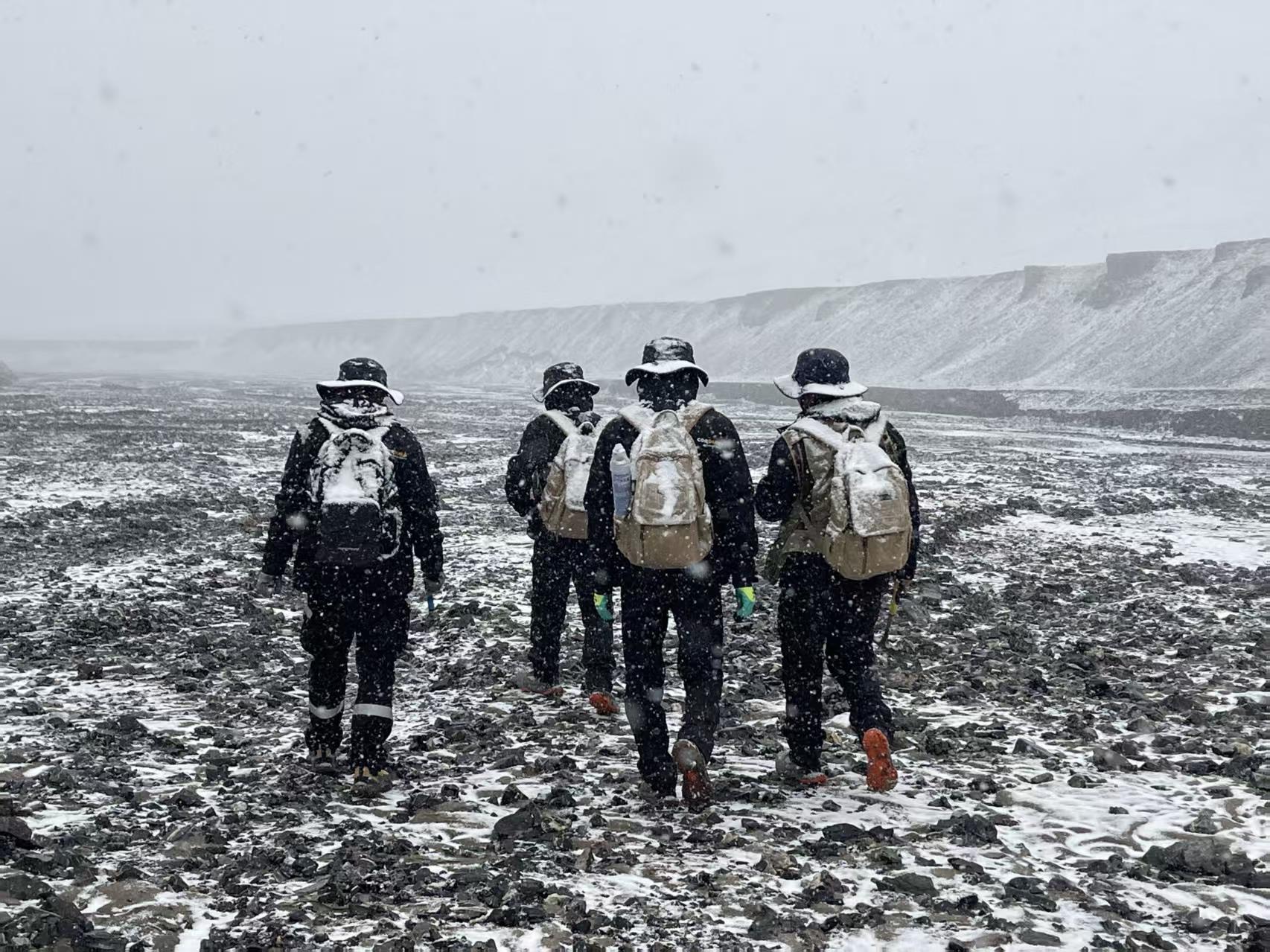 《中國有色金屬報》11月19日訊:日前,在新疆一處多金屬礦普查項目現(xiàn)場,西北有色地礦集團717總隊公司的地質工作者們在完成地質剖面測制任務后的歸途中,遭遇突如其來的風雪。漫天飛雪裹挾著碎石,撲打在荒原與他們身上。這支“地質鐵軍”踏險而行,以堅定的腳步在極端環(huán)境中執(zhí)著向前。他們頂住的,是飛雪的凜冽;他們肩負的,是摸清國家礦產(chǎn)資源家底的使命。
