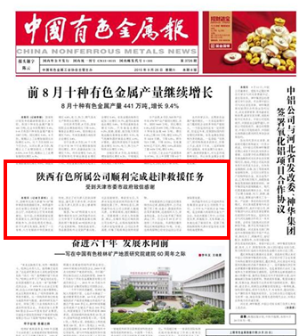 陜西盛華冶化公司是陜西有色集團(tuán)冶金礦業(yè)公司控股子公司,上半年生產(chǎn)硅鈣合金7986噸,是全球最大的硅鈣合金生產(chǎn)企業(yè)。在此次救援工作中,公司高度負(fù)責(zé)、積極配合、無私奉獻(xiàn),出色地完成了援助任務(wù),受到了現(xiàn)場(chǎng)指揮部和天津市安監(jiān)局有關(guān)領(lǐng)導(dǎo)的高度贊揚(yáng)。