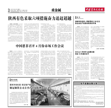 中國有色金屬報(bào)、新浪財(cái)經(jīng):陜西有色采取六項(xiàng)措施奮力追趕超越