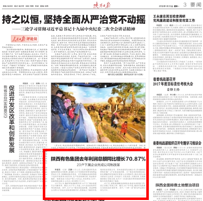 1月12日,記者從陜西有色金屬集團(tuán)有限公司獲悉,該集團(tuán)2017年深化國有資本投資運(yùn)營試點(diǎn)工作,統(tǒng)籌推進(jìn)各項(xiàng)改革。全年超額完成省國資委下達(dá)的年度改革目標(biāo)任務(wù),生產(chǎn)經(jīng)營持續(xù)向好,效益穩(wěn)步提升。集團(tuán)完成工業(yè)總產(chǎn)值1256億元,同比增長3.69%,實(shí)現(xiàn)利潤總額10.26億元,同比增長70.87%。
