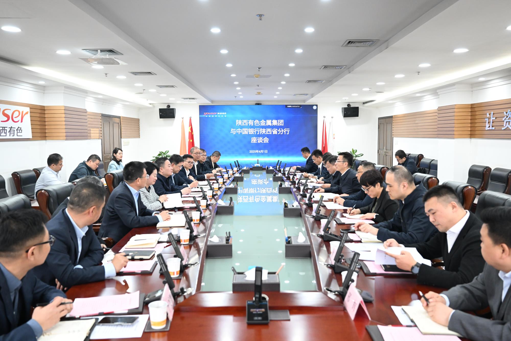 4月1日,陜西有色金屬集團黨委副書記、董事、總經理莫勇在集團總部接待了中國銀行陜西省分行黨委書記、行長蒙震一行,雙方圍繞深化銀企合作、共同推動高質量發(fā)展進行座談交流。中國銀行陜西省分行黨委委員、副行長劉繼軍、訾光銳,集團公司黨委委員、總會計師李慶臻參加座談。