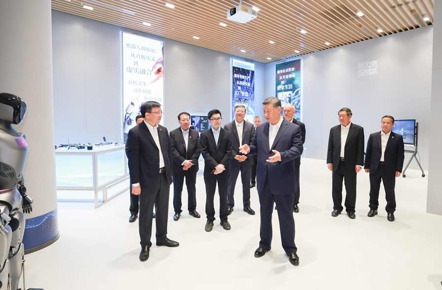 在“模速空間”3層,一場以“下一代智能體的自主進(jìn)化”為主題的沙龍正在舉行。習(xí)近平高興地參與進(jìn)來,同現(xiàn)場青年創(chuàng)新人才親切交流。大家紛紛向總書記匯報(bào)所在團(tuán)隊(duì)開展人工智能技術(shù)研究和產(chǎn)業(yè)應(yīng)用的收獲體會(huì)。習(xí)近平對大家說,人工智能是年輕的事業(yè),也是年輕人的事業(yè)。我們正在全面推進(jìn)強(qiáng)國建設(shè)、民族復(fù)興偉業(yè),正是年輕一代展示才華、大顯身手的好時(shí)候。實(shí)現(xiàn)中華民族的偉大夢想,寄希望于年輕人。大家要懷愛國之心、立報(bào)國之志、增強(qiáng)國之能,把個(gè)人奮斗同國家前途命運(yùn)緊緊聯(lián)系在一起,跑好歷史的接力棒,在推進(jìn)中國式現(xiàn)代化的寬廣舞臺上綻放絢麗的青春光彩。