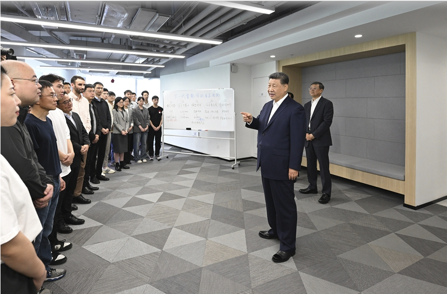 4月29日,中共中央總書記、國家主席、中央軍委主席習(xí)近平在上海考察。這是習(xí)近平在位于徐匯區(qū)的上?!澳K倏臻g”大模型創(chuàng)新生態(tài)社區(qū),同正在參加“下一代智能體的自主進(jìn)化”主題沙龍的青年創(chuàng)新人才親切交流。新華社記者 謝環(huán)馳 攝
