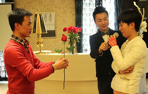 現(xiàn)場(chǎng)男嘉賓表白,虔誠送花