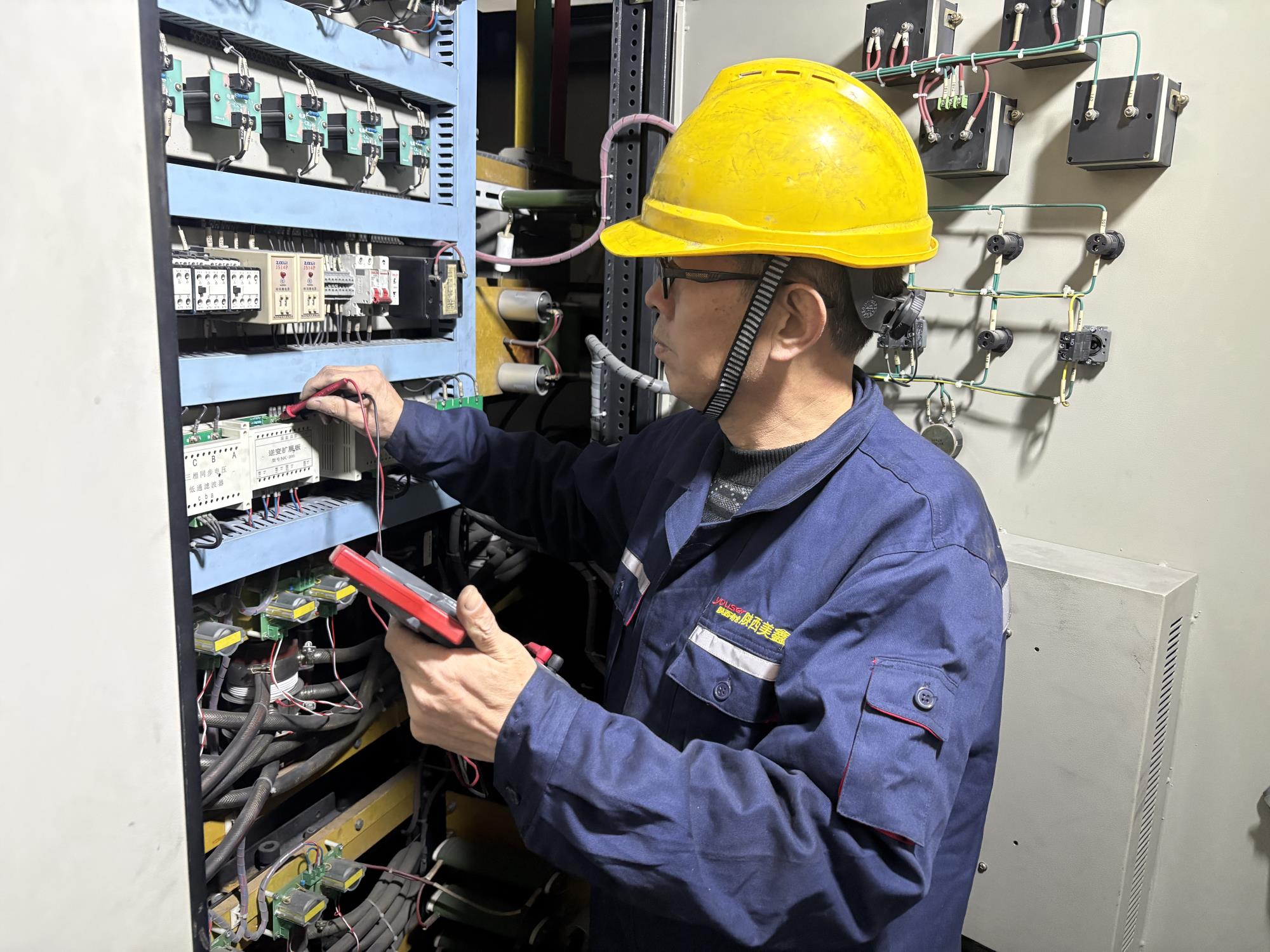在組裝車間的電氣設(shè)備與配電柜之間,總有一個身著工裝、背著工具包的身影來回穿梭。他時而舉著測溫槍緊盯儀表讀數(shù),時而拿起萬用表細致測量參數(shù),時而俯身排查線路隱藏故障,他就是美鑫陽極分公司組裝車間的電工梁佰龍。三十年來,梁佰龍以扎實的技術(shù)、勤懇的態(tài)度和始終如一的擔當,默默守護著電氣系統(tǒng)的平穩(wěn)運行,把對電工職業(yè)的熱愛全部傾注在車間每一寸線路、每一臺設(shè)備中。
