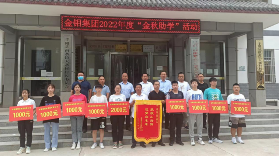 8月23日,金鉬集團(tuán)2022年“金秋助學(xué)”活動資金發(fā)放儀式在定點幫扶村千陽縣南寨鎮(zhèn)大寨村舉行,9名考取大學(xué)本科的大寨村籍學(xué)生,獲得集團(tuán)助學(xué)金共計1萬元。