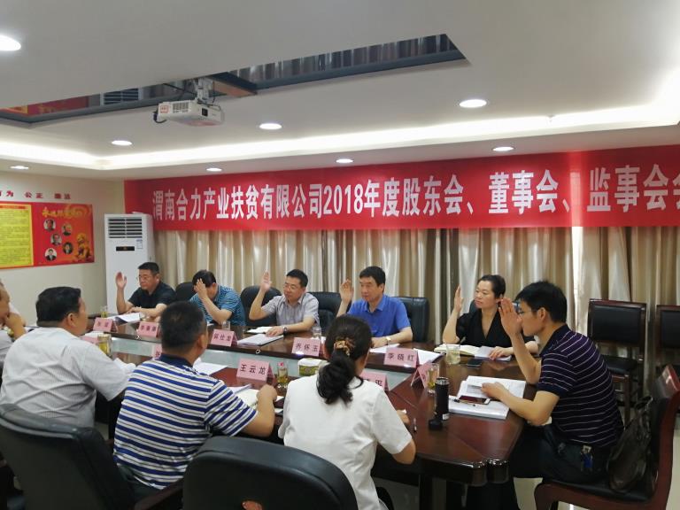 6月19日,渭南合力產(chǎn)業(yè)扶貧公司根據(jù)《公司法》《公司章程》召開了2018年度東大會、董事會、監(jiān)事會。股東代表、董事、監(jiān)事出席了會議,會議由董事長張軍春主持。會議審議通過了《2018年度工作總結(jié)及2019年工作計劃報告》《2018年度財務決算報告2019年財務預算報告》《2018年度董事會工作報告》《2018年度監(jiān)事會工作報告》《關于白水縣經(jīng)濟發(fā)展有限公司雷公循環(huán)經(jīng)濟產(chǎn)業(yè)園區(qū)產(chǎn)業(yè)扶貧標準化廠房建設項目的議案》等議案。