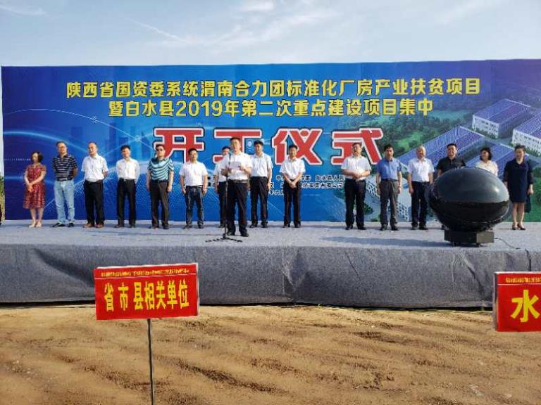 6月18日,渭南合力扶貧公司直投白水縣經(jīng)濟(jì)發(fā)展有限公司建設(shè)的白水縣雷公園區(qū)標(biāo)準(zhǔn)化廠房產(chǎn)業(yè)扶貧項(xiàng)目舉行開(kāi)工儀式。省國(guó)資委監(jiān)事會(huì)主席、助力脫貧攻堅(jiān)領(lǐng)導(dǎo)小組副組長(zhǎng)王文斌,省扶貧辦社會(huì)扶貧辦主任趙勁松,渭南合力團(tuán)成員單位主要領(lǐng)導(dǎo),渭南市及白水縣有關(guān)領(lǐng)導(dǎo)出席開(kāi)工儀式。