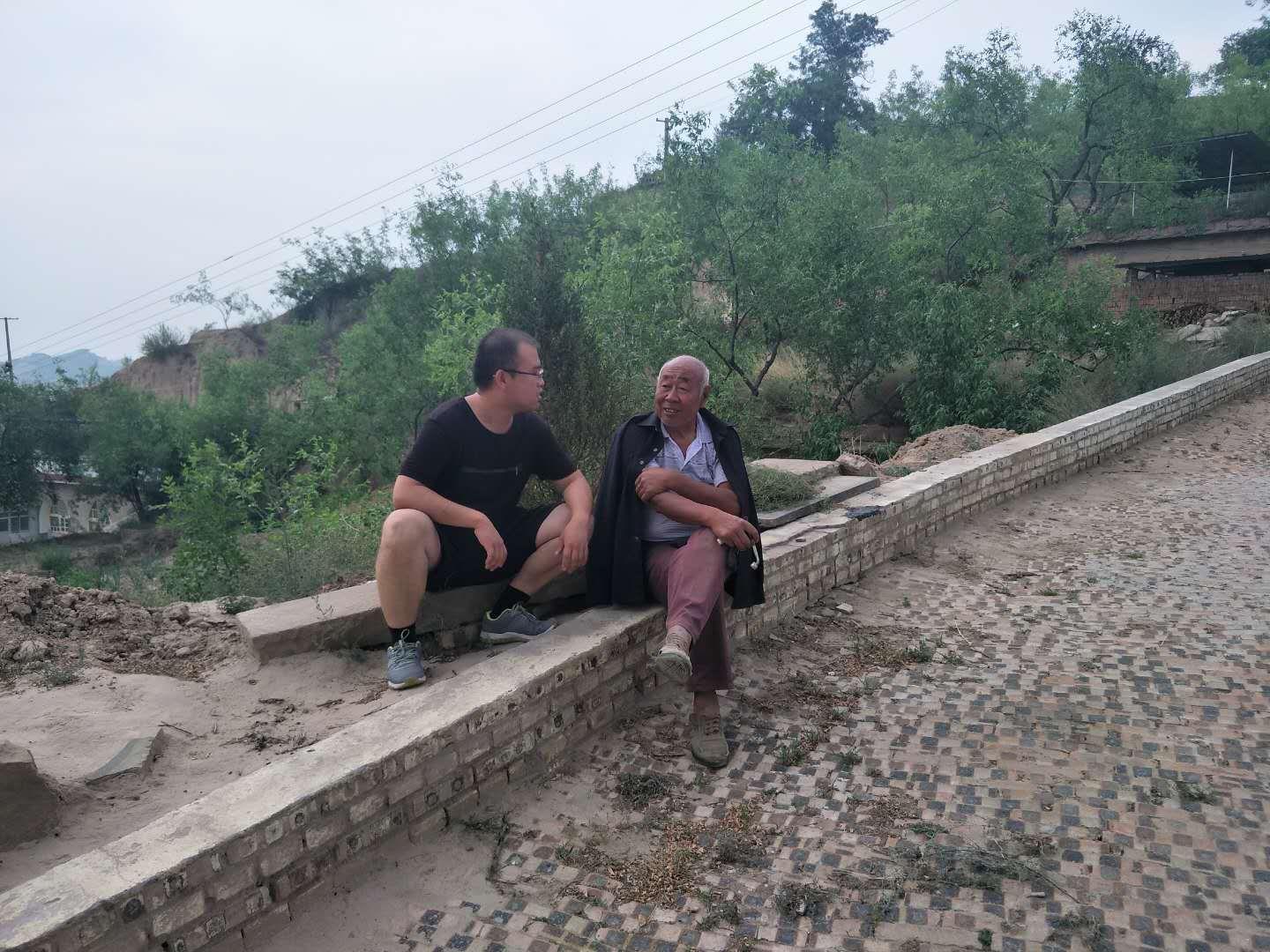 駐村第一書記王淵(左)和村民馮文和(右)拉家常