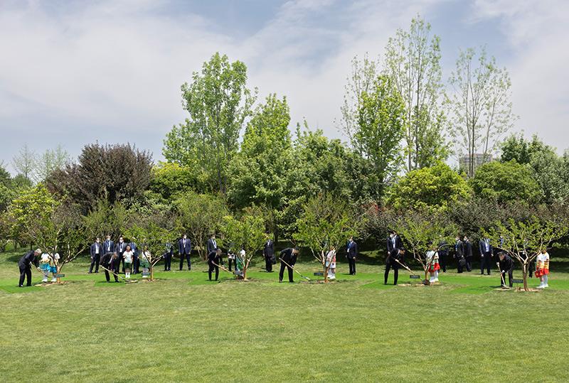 峰會結(jié)束后,習(xí)近平和中亞五國元首共同種下六棵石榴樹,既見證中國同中亞千年友好交往,也象征中國同中亞緊密團(tuán)結(jié)合作,更寄托對中國-中亞關(guān)系美好未來的期待。新華社記者 殷博古 攝