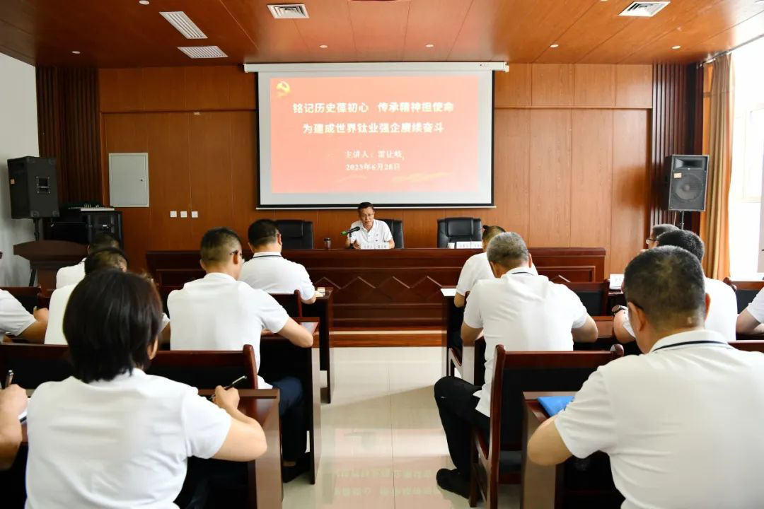 在扶眉戰(zhàn)役紀念館會議室,雷讓岐以《銘記歷史葆初心 傳承精神擔使命 為建成世界鈦業(yè)強企賡續(xù)奮斗》為題,現(xiàn)場為大家講授了主題教育專題黨課。