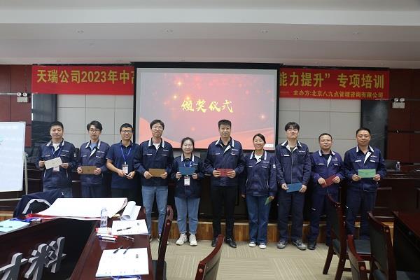 培訓結(jié)業(yè)儀式上,人力資源部經(jīng)理張永亮和黨群工作部主任胡磊分別作了結(jié)業(yè)發(fā)言,對兩位授課講師的精彩授課表示感謝,對本次參加培訓的學員表示祝賀。他們勉勵所有參訓人員,要把本次培訓學習作為個人管理能力提升的一個新起點,同日常管理工作實際結(jié)合起來,加強學習、提高修養(yǎng),不斷完善自己、提高自己,在今后的工作崗位上扎實工作、開拓進取,為天瑞硅材料的發(fā)展作出應有的貢獻。