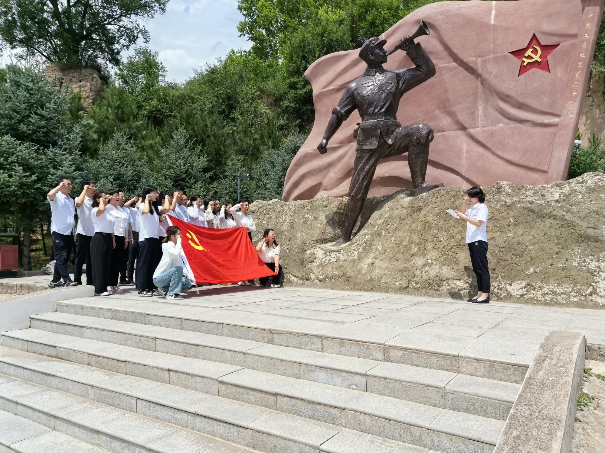 在紅二十六軍軍部舊址紀(jì)念館內(nèi),講解員講授了中國工農(nóng)紅軍第26軍成立的歷史背景、創(chuàng)建經(jīng)過以及戰(zhàn)斗歷程。一張張珍貴的歷史照片,一件件鐫刻印記的革命文物,記錄了一段段直抵人心的革命故事。大家共同追尋劉志丹、謝子長等老一輩革命家的足跡,緬懷無數(shù)革命先輩艱苦卓絕、不怕流血犧牲的奮斗歷史,并在黨旗的見證下高舉右拳重溫入黨誓詞。活動(dòng)中,機(jī)關(guān)兩名新入黨黨員分享了入黨感悟,重溫入黨志愿書,回望入黨初心,展望未來奮進(jìn)路。