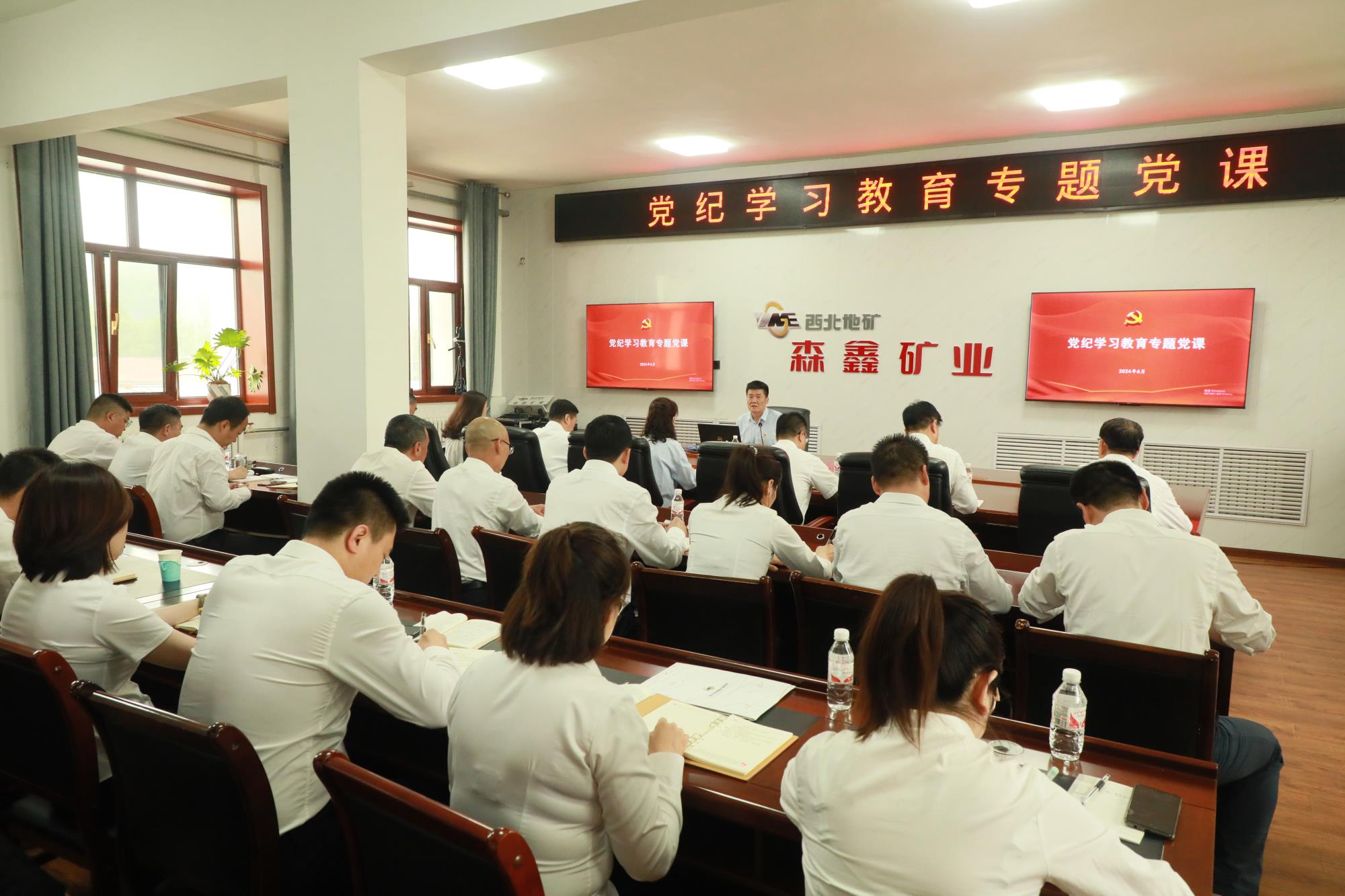 7月4日,陜西有色金屬集團黨委副書記、董事、工會主席王小慶到森鑫礦業(yè)公司調(diào)研指導(dǎo)工作,講授黨紀學(xué)習(xí)教育專題黨課并開展“送清涼”慰問活動。地礦集團、黃金集團黨委書記、董事長秦西社等陪同調(diào)研。