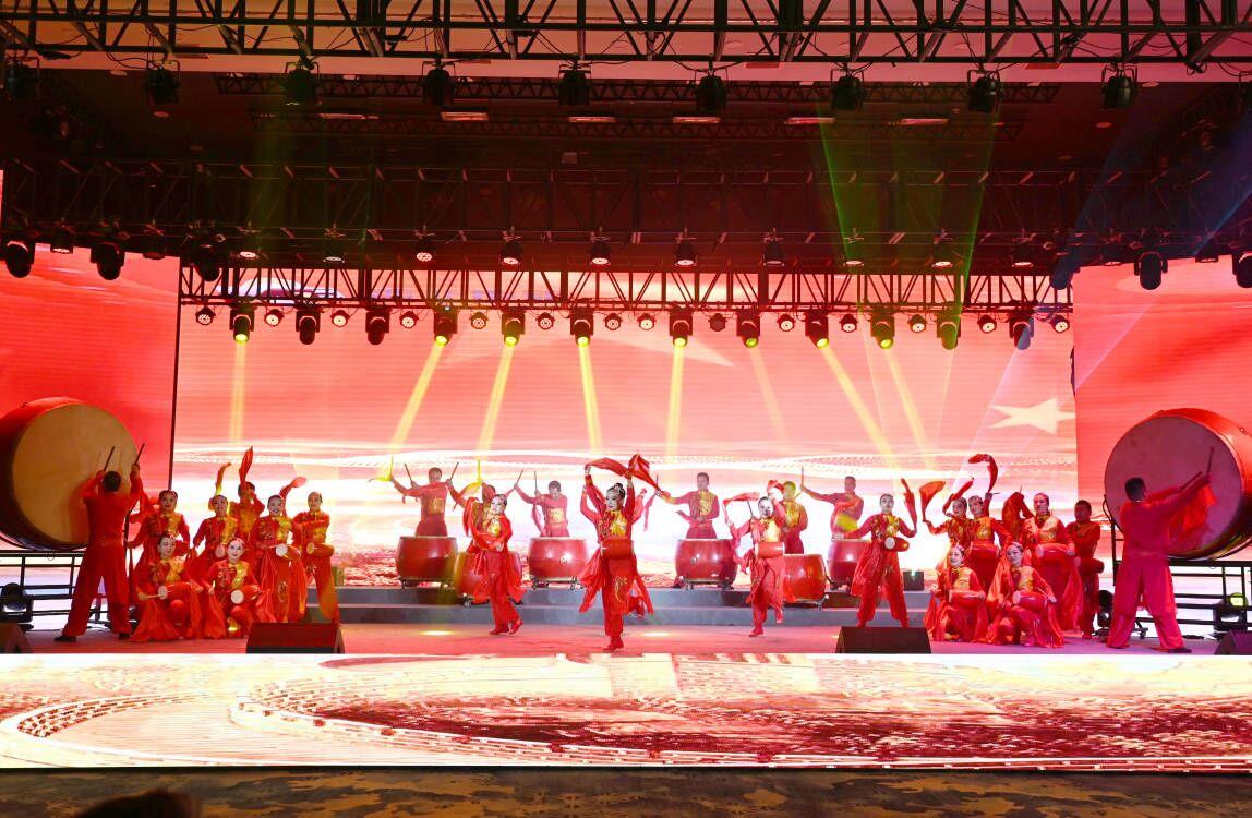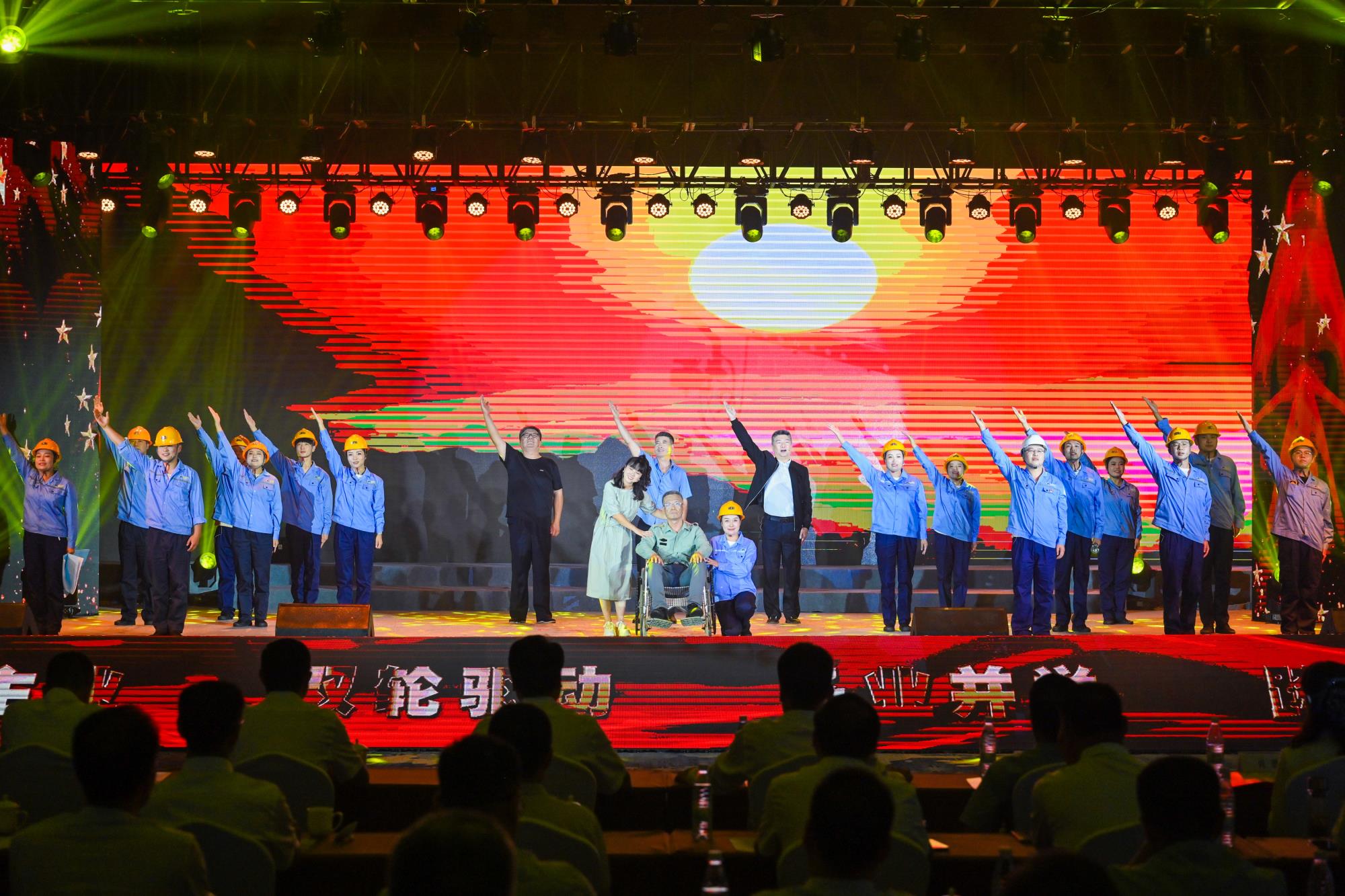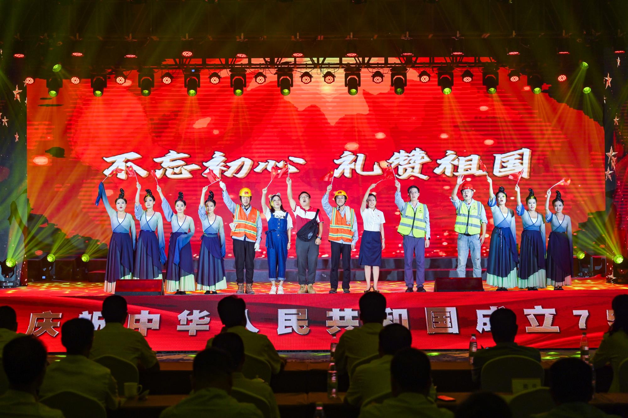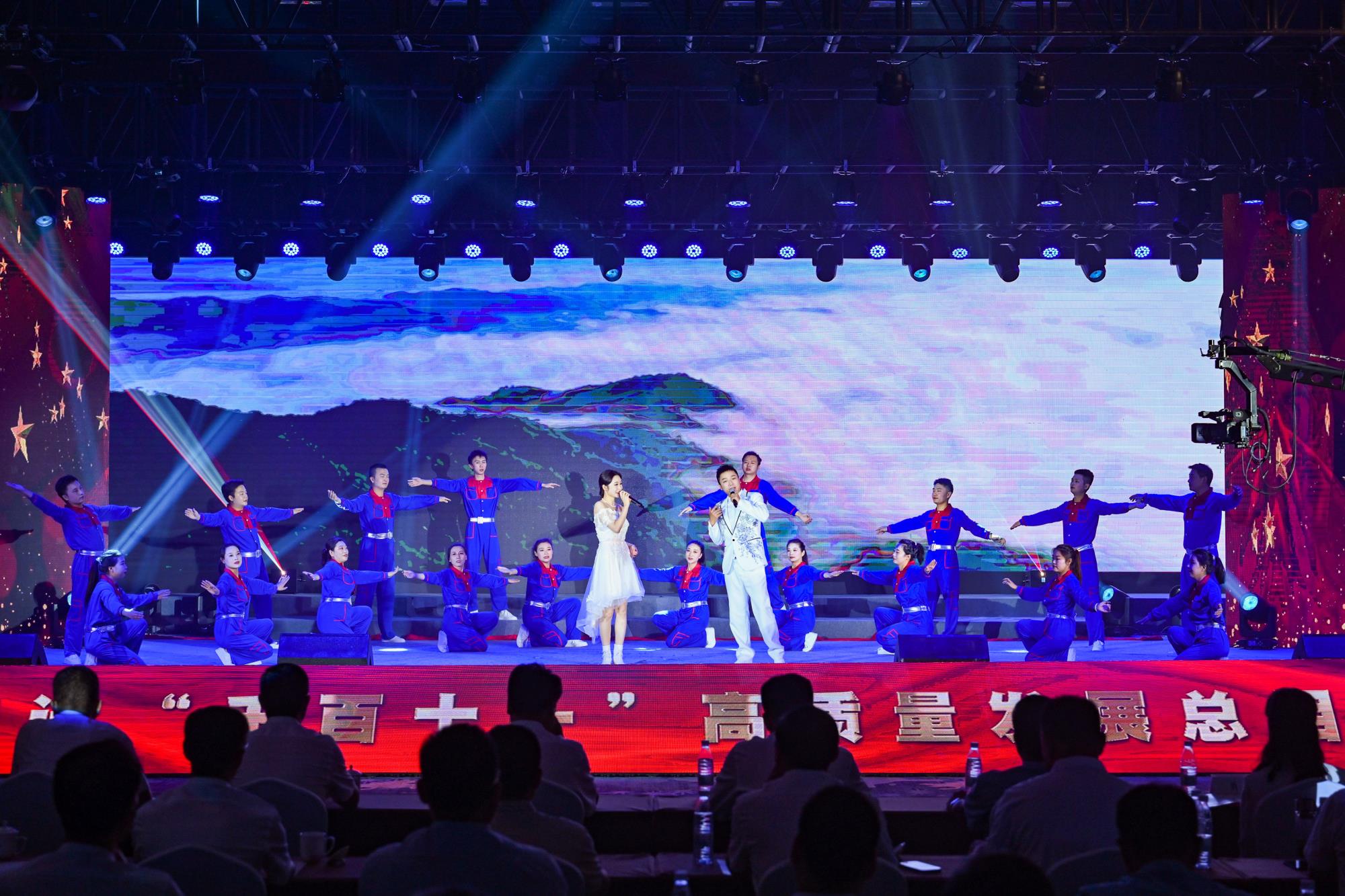 “我們都是奮斗者,報國夙愿挺身償。勇立潮頭搏浪去,萬眾攻堅鑄輝煌。肩擔(dān)著使命創(chuàng)偉業(yè),復(fù)興路上圓夢想!”一首首動人的歌曲,一段段優(yōu)美的舞蹈,一句句深情的朗誦,傳遞著對偉大祖國的無限祝福,對有色事業(yè)的執(zhí)著熱愛,對美好生活的熾熱向往,凝聚起廣大職工為實現(xiàn)中國夢、強企夢而不懈奮斗的壯志豪情。以磐石之志,堅地質(zhì)初心,廣大職工表示將立足本職、擔(dān)當(dāng)作為,為實現(xiàn)兩集團高質(zhì)量跨越發(fā)展,奮進(jìn)陜西有色金屬集團“千百十一”總目標(biāo)再創(chuàng)佳績、再立新功。兩集團領(lǐng)導(dǎo)班子成員、部分外部董事,機關(guān)全體人員,權(quán)屬單位主要負(fù)責(zé)人、工會主席、受表彰代表和職工代表等300余人在現(xiàn)場觀看演出。本次活動通過新媒體平臺進(jìn)行了圖片直播,截至發(fā)稿前,累計吸引12萬余人次線上觀看。