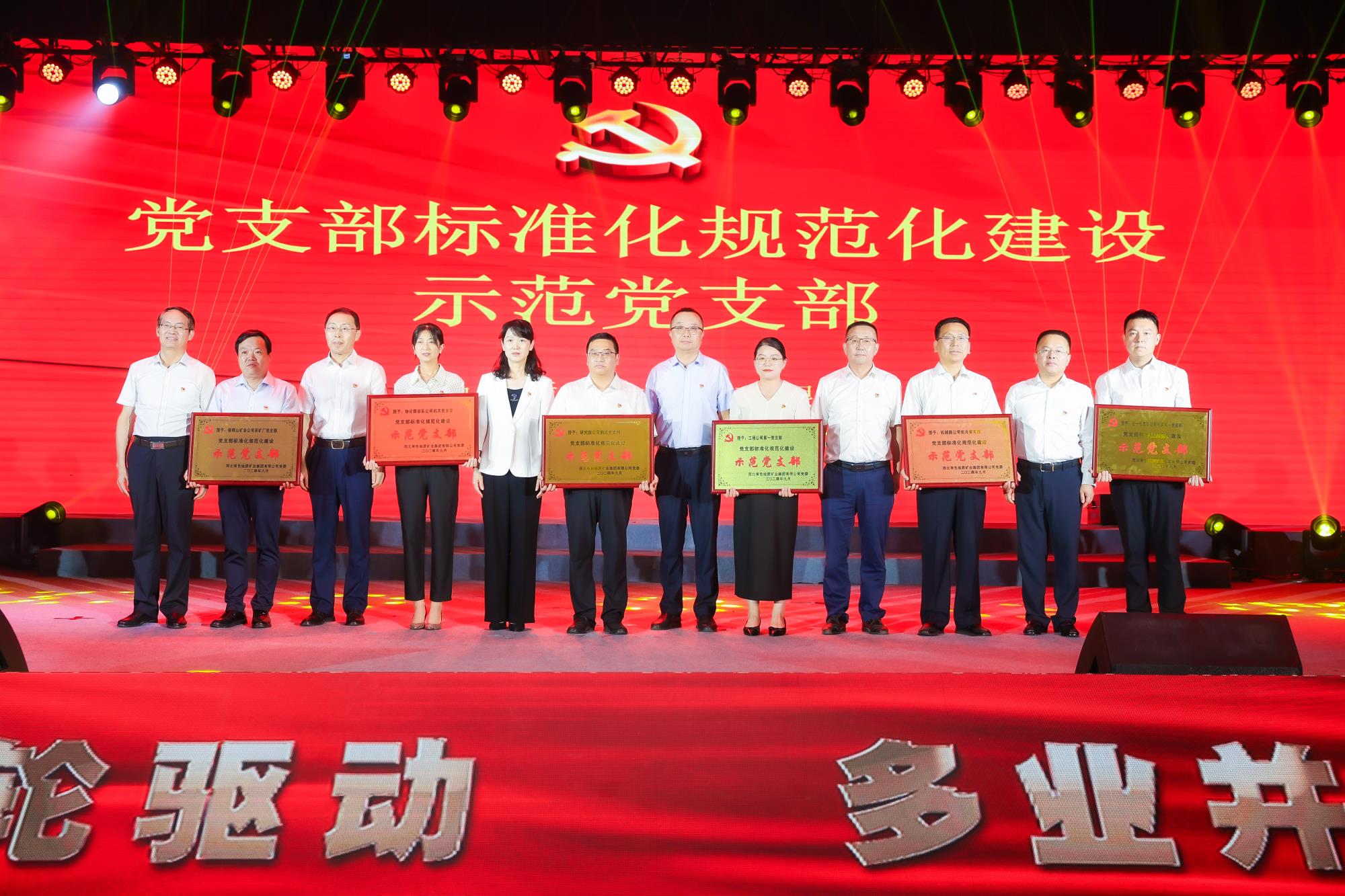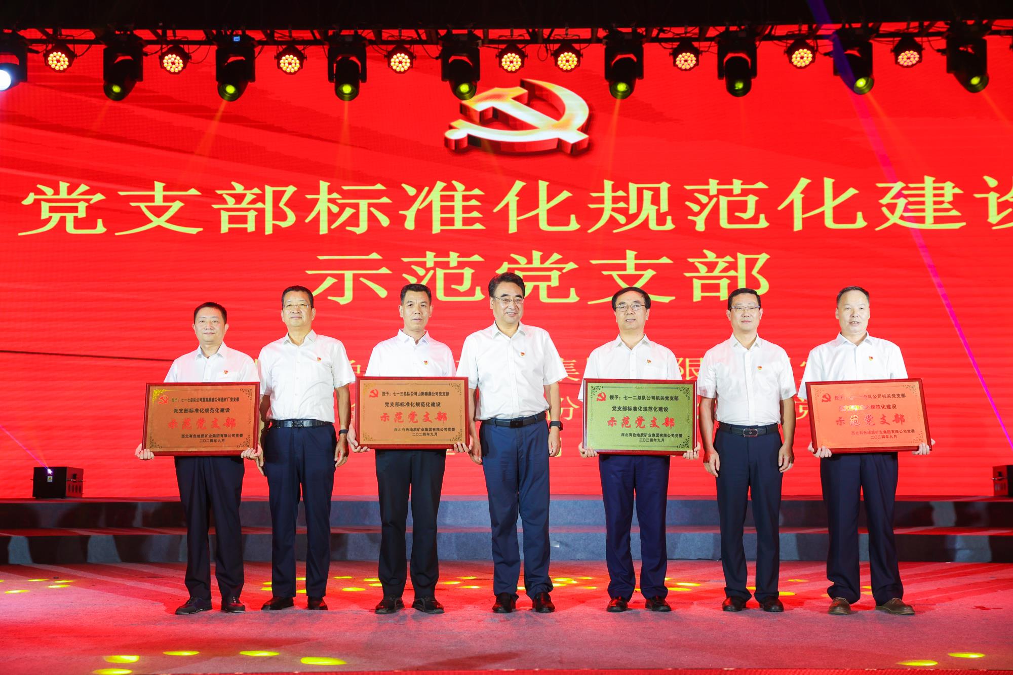 陜西有色金屬集團黨委副書記、董事、工會主席王小慶,工會常務(wù)副主席張繼祥應(yīng)邀出席。陜西有色金屬集團董事,兩集團黨委書記、董事長秦西社為表彰大會致辭。兩集團黨委副書記、工會主席肖璐宣讀表彰決定。大會為示范黨支部、兩集團命名的權(quán)屬單位黨建品牌進(jìn)行了授牌,為黨支部書記“比業(yè)務(wù)、賽成績、亮經(jīng)驗”黨建業(yè)務(wù)模擬展演優(yōu)秀作品進(jìn)行頒獎。