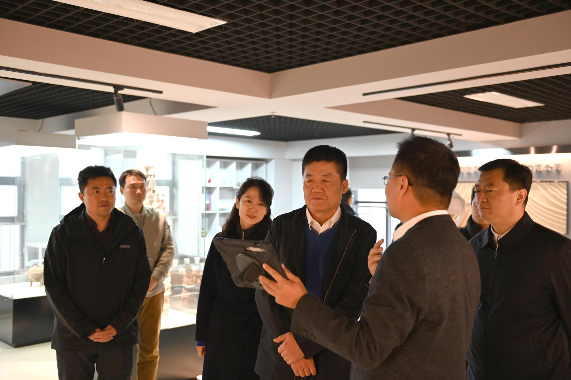 王小慶一行實(shí)地查看了工程公司巖土文物實(shí)驗(yàn)室,參觀了廊道文化墻,并走進(jìn)數(shù)字創(chuàng)新產(chǎn)業(yè)研究院文創(chuàng)工作室,觀摩了數(shù)字化技術(shù)在不同場(chǎng)景中的解決方案和應(yīng)用思路展示,詳細(xì)了解工程公司文物數(shù)字化產(chǎn)業(yè)發(fā)展現(xiàn)狀及未來(lái)規(guī)劃。