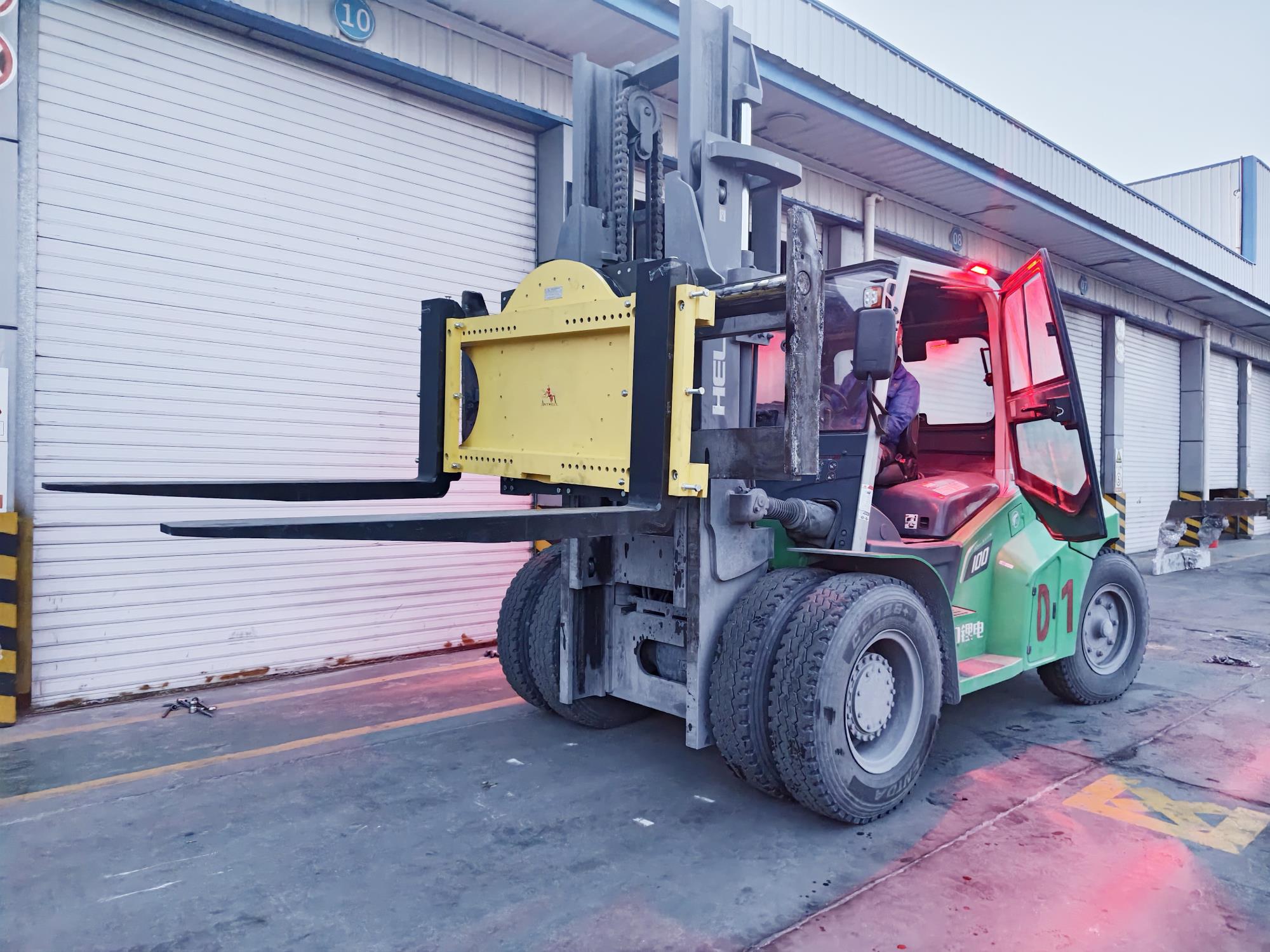 此前,叉車清理電解質(zhì)托盤時,因缺乏專用旋轉(zhuǎn)設(shè)備,長期依賴貨叉強行挑翻托盤的原始作業(yè)方式。這種“硬挑硬翻”不僅作業(yè)效率低下,更存在多重安全隱患:托盤易受力不均變形開裂,物料傾倒時易瞬時滾落,還可能引發(fā)設(shè)備異常磕碰、人員意外傷害等問題,既制約生產(chǎn)進度,也影響設(shè)備使用壽命,成為亟待破解的生產(chǎn)難題。