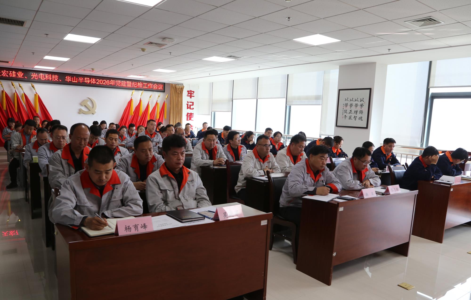 會(huì)上劉建中分別與黨支部負(fù)責(zé)人代表簽訂《2026年度黨建工作目標(biāo)責(zé)任書》,與職能部門中層干部代表簽訂《2026年度黨風(fēng)廉政建設(shè)責(zé)任書》。光電科技、天宏硅業(yè)、華山半導(dǎo)體領(lǐng)導(dǎo)班子成員,中層干部,黨支部委員及黨員代表參加會(huì)議。