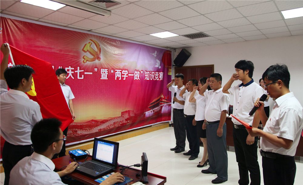 會(huì)上,還舉行了新黨員入黨宣誓儀式。汪宏等5名新吸收的預(yù)備黨員在黨委組織部長(zhǎng)楊新宏的帶領(lǐng)下,面向黨旗莊嚴(yán)宣誓。李晚平、楊軍分別代表新吸收的預(yù)備黨員和新轉(zhuǎn)正黨員發(fā)言,他們表示將加強(qiáng)學(xué)習(xí),努力工作,發(fā)揮作用,爭(zhēng)創(chuàng)佳績(jī),做合格黨員。