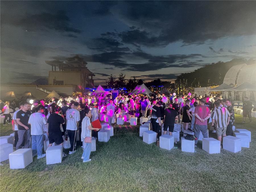 青年人喜聞樂見的露營派對在一場突如其來的暴雨后彩虹般綻放。180余名單身青年職工,在寶鈦集團工會精心組織的文藝演出和設(shè)計的交友游戲中展示自我風(fēng)采,并通過友好交流,逐步加深接觸、敞開心扉,勇敢地在這個美妙的夜晚表露心聲、追逐愛情?;顒釉谝焕烁哌^一浪的游戲氛圍和歡呼聲中進入高潮,最終一對有情人成功牽手。王建超為他們頒發(fā)了紀念品,并祝福有情人終成眷屬。