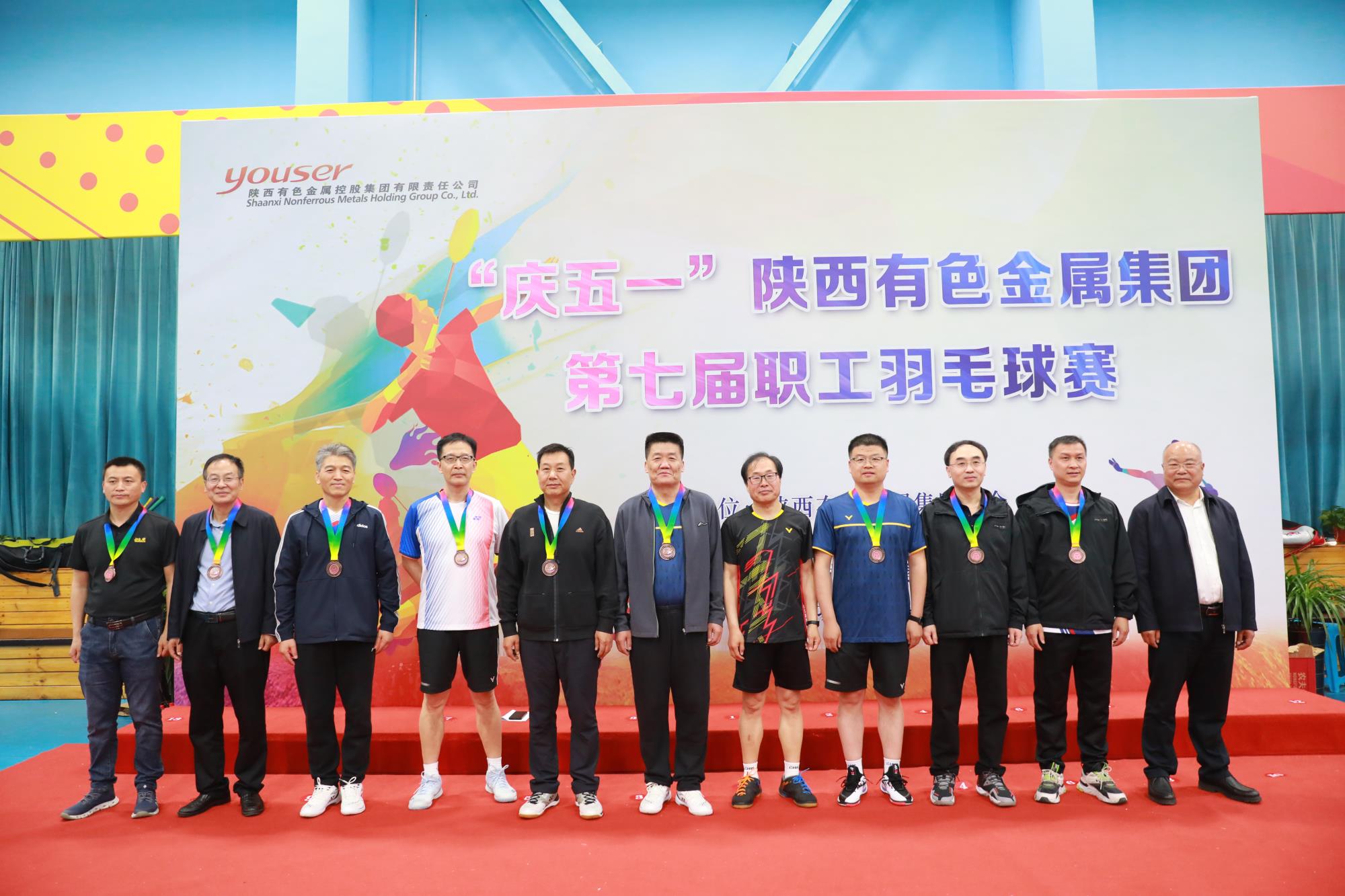 4月28日,“慶五一”陜西有色金屬集團(tuán)第七屆職工羽毛球賽在金鉬集團(tuán)職工活動(dòng)中心圓滿閉幕。陜西有色金屬集團(tuán)公司黨委副書記、董事、工會(huì)主席王小慶,黨委委員、總會(huì)計(jì)師歐世秦,工會(huì)常務(wù)副主席張繼祥,金鉬集團(tuán)黨委副書記、總經(jīng)理柳曉峰,黨委副書記朱凌云及各參賽單位領(lǐng)導(dǎo)出席閉幕式。