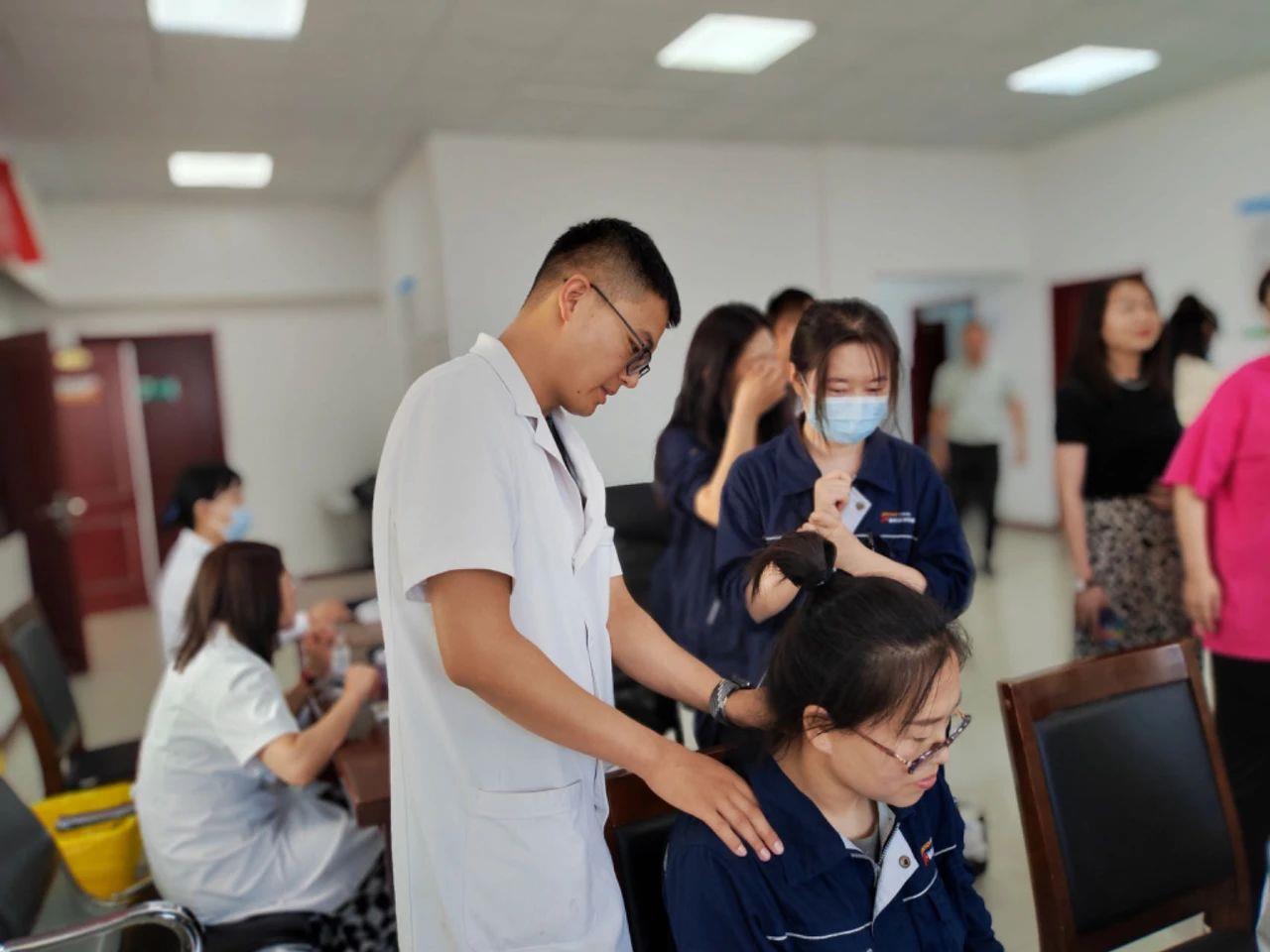 在針灸康復(fù)科專家的診位前,不少職工前來體驗推拿、拔罐和針灸,感受著傳統(tǒng)醫(yī)學(xué)的博大精深;口腔科專家為職工們進行口腔檢查,并給予專業(yè)的護理建議,為口腔健康筑起堅固防線;內(nèi)分泌科專家針對職工們常見的血糖、血脂問題給予科學(xué)的飲食和運動指導(dǎo),幫助職工們建立起健康的生活方式......此外,醫(yī)護人員還為職工們測量血壓、血糖,進行心電圖、甲狀腺B超檢查等項目,幫助職工全面了解自己的身體狀況,做到疾病早發(fā)現(xiàn)、早診斷、早治療。