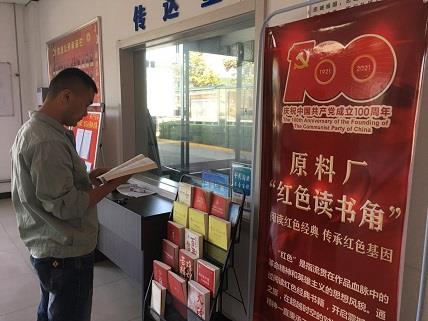 原料廠黨支部精心挑選的《家風傳承》、《家書里的百年信仰》、《火種》、《紅巖》等近20本紅色經(jīng)典著作,一經(jīng)展出就受到黨員干部和職工群眾的喜愛。有駐足翻閱的,也有登記后帶回車間、班組閱讀的,醒目的紅色讀書角成了原料廠一道亮麗的風景線。