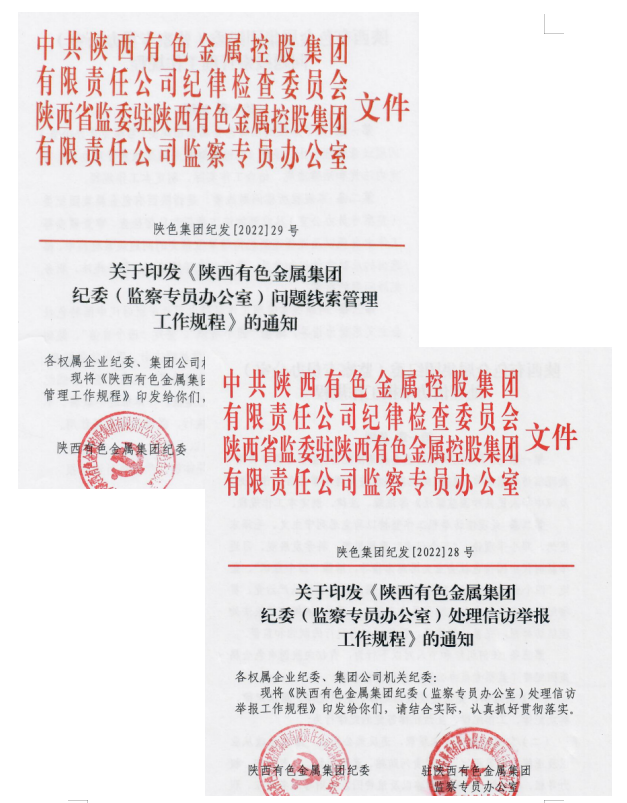 兩個規(guī)程的下發(fā),有效推動了陜西有金屬集團(tuán)各級紀(jì)檢機(jī)構(gòu)在處理信訪舉報和問題線索管理工作中各司其職、相互協(xié)調(diào)、相互制約,進(jìn)一步健全內(nèi)控機(jī)制,標(biāo)志著陜西有色金屬集團(tuán)紀(jì)檢監(jiān)察工作向規(guī)范化、法治化、正規(guī)化邁出了一大步。下一步,陜西有色金屬集團(tuán)紀(jì)委將進(jìn)一步貫徹“全周期管理”理念,抓好規(guī)程的落地執(zhí)行,發(fā)揮好對信訪舉報和問題線索處置工作的指引作用,發(fā)揮好對紀(jì)檢監(jiān)察干部能力提升和自我監(jiān)督的促進(jìn)作用,強(qiáng)化內(nèi)部監(jiān)督制約,明晰崗位職責(zé),規(guī)范權(quán)力運行,不斷提升紀(jì)檢監(jiān)察工作規(guī)范化、法治化、正規(guī)化水平。同時,充分借助檢舉舉報平臺及案件監(jiān)督管理系統(tǒng)數(shù)據(jù)的“硬指標(biāo)”,對重要問題線索處置、重要案件辦理、“四種形態(tài)”精準(zhǔn)運用等加強(qiáng)監(jiān)督,跑出監(jiān)督加速度,推動陜西有色金屬集團(tuán)紀(jì)檢監(jiān)察工作高質(zhì)量發(fā)展。